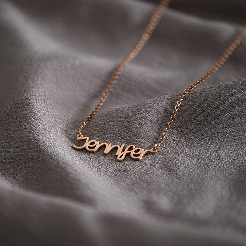 Showcase your individuality with our Elegant Personalized Name Necklace. Designed with a minimalist cursive nameplate, this chic piece adds a touch of personal charm to any outfit. Expertly crafted in silver, it gleams with refined beauty and timeless simplicity, making it a must-have everyday accessory.
