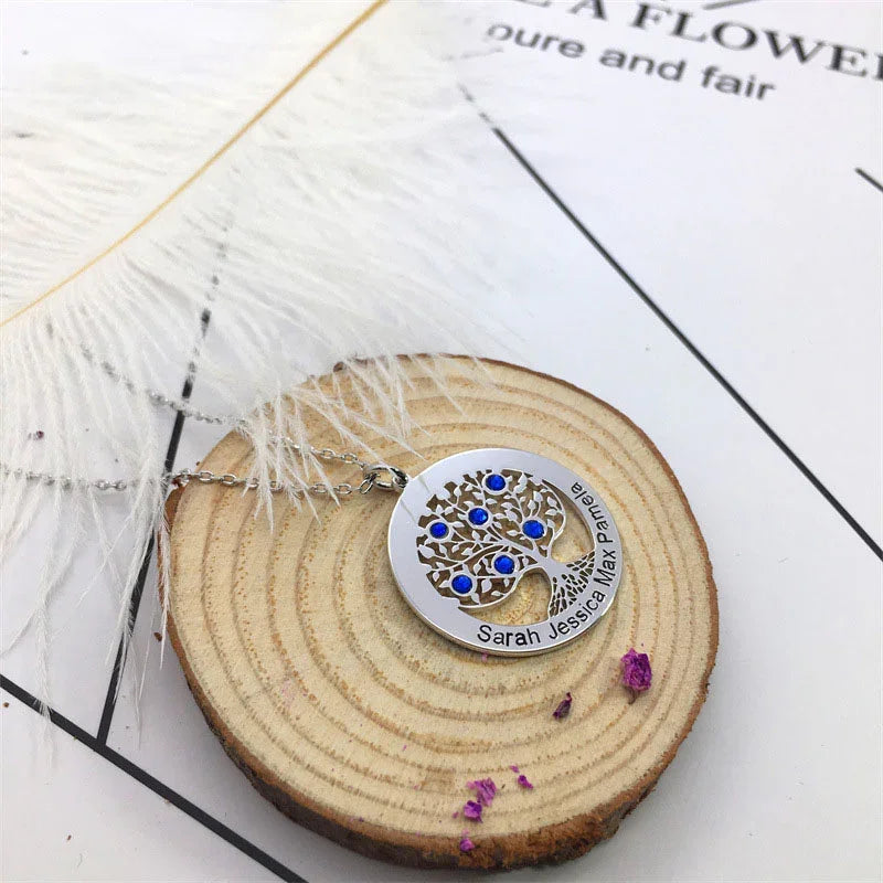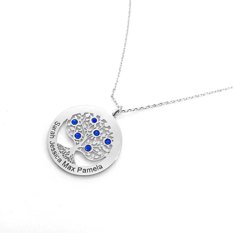 Celebrate the beauty of family and connection with our Personalized Tree of Life Necklace. This stunning pendant features a delicately crafted Tree of Life adorned with radiant blue stones, symbolizing love, unity, and growth. Made from premium silver, it offers enduring shine and can be customized with engraved names to create a truly meaningful keepsake.