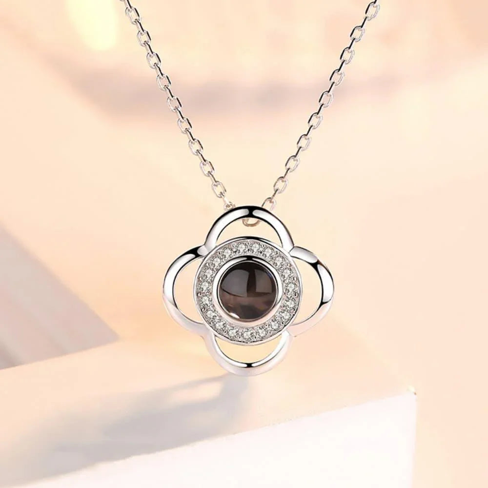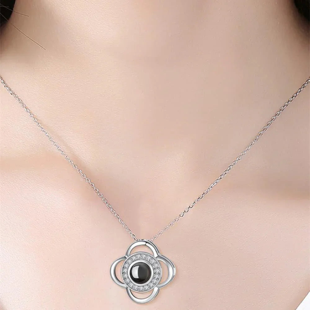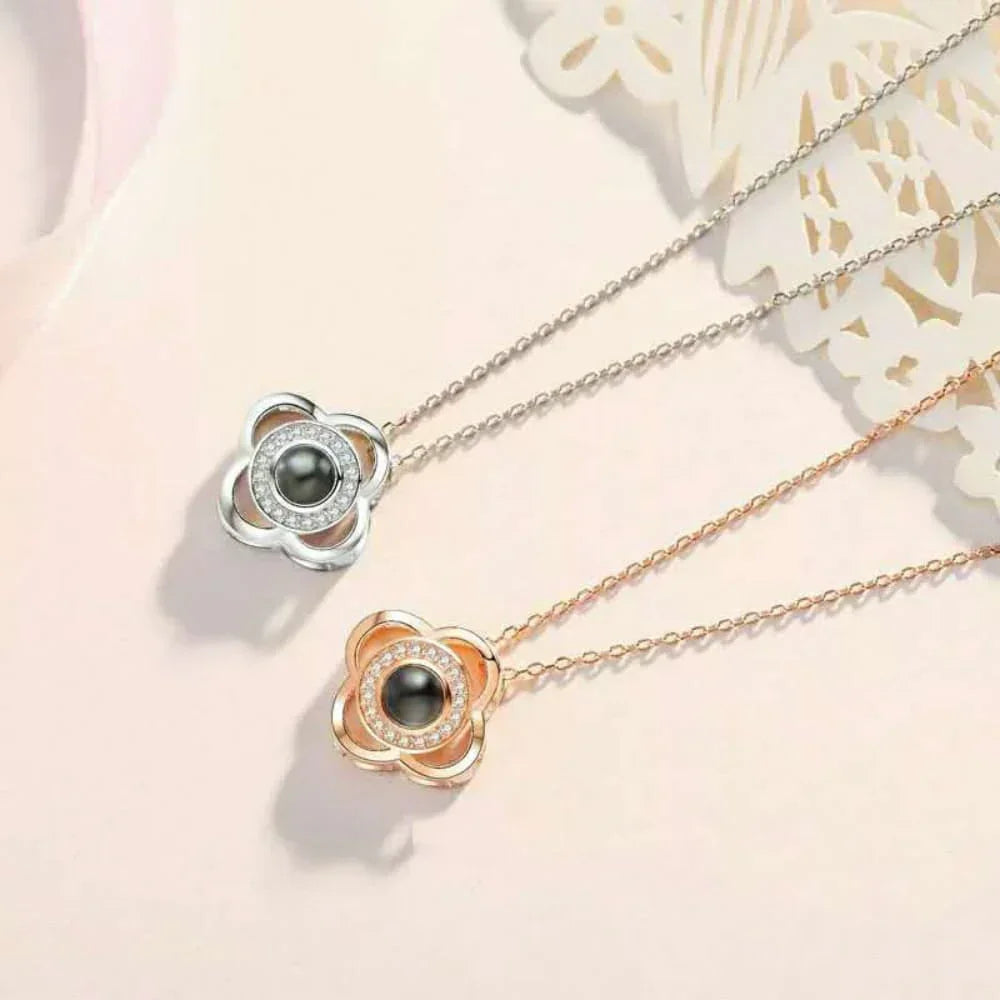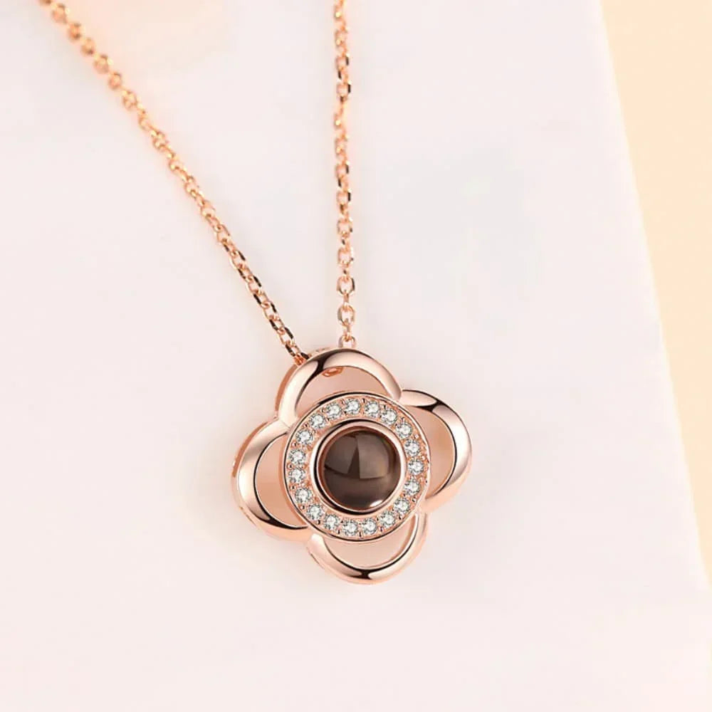 This elegant necklace features a four-petal flower pendant, symbolizing love, remembrance, and the everlasting bond you share with someone special. At its center lies a hidden photo, customized just for you, capturing a memory you can always keep close.