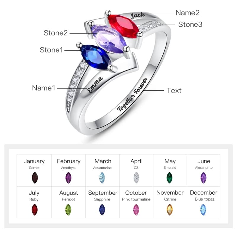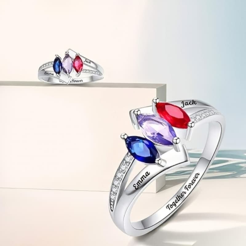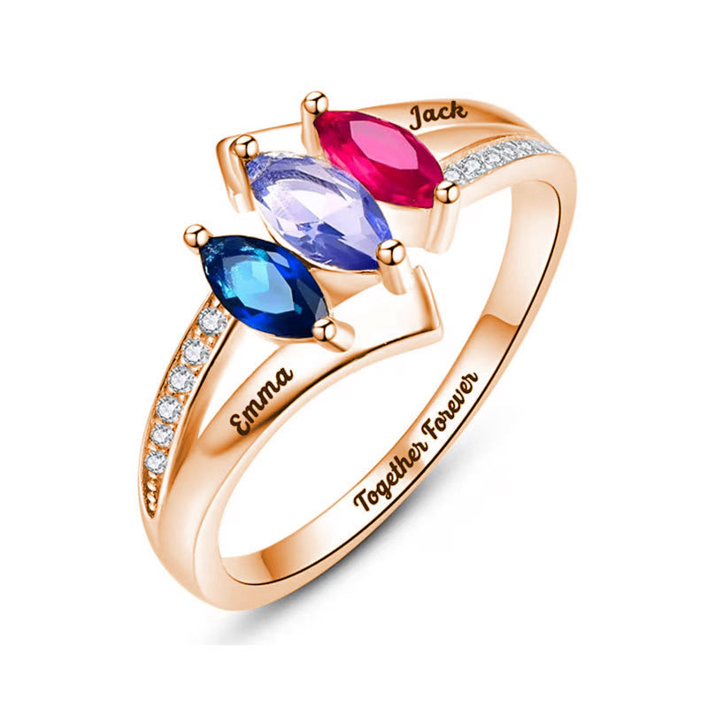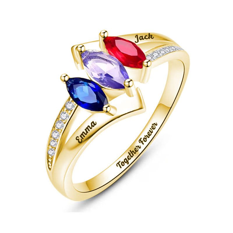 Celebrate the unbreakable bond between loved ones with this elegant three-stone design.Each marquise-cut birthstone shines with vibrant color, symbolizing connection and meaning.