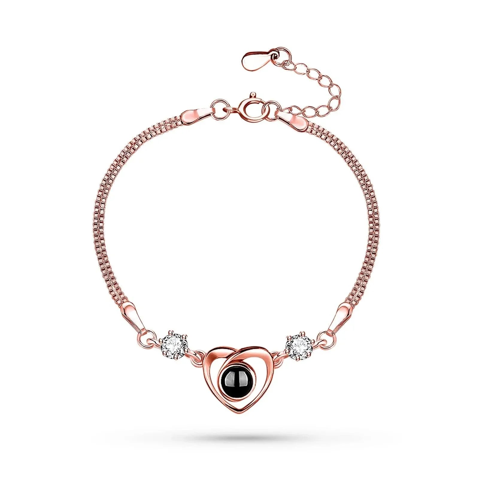 This elegant bracelet features a heart-shaped charm that holds a secret—your loved one’s photo, hidden within and always close to your pulse.
