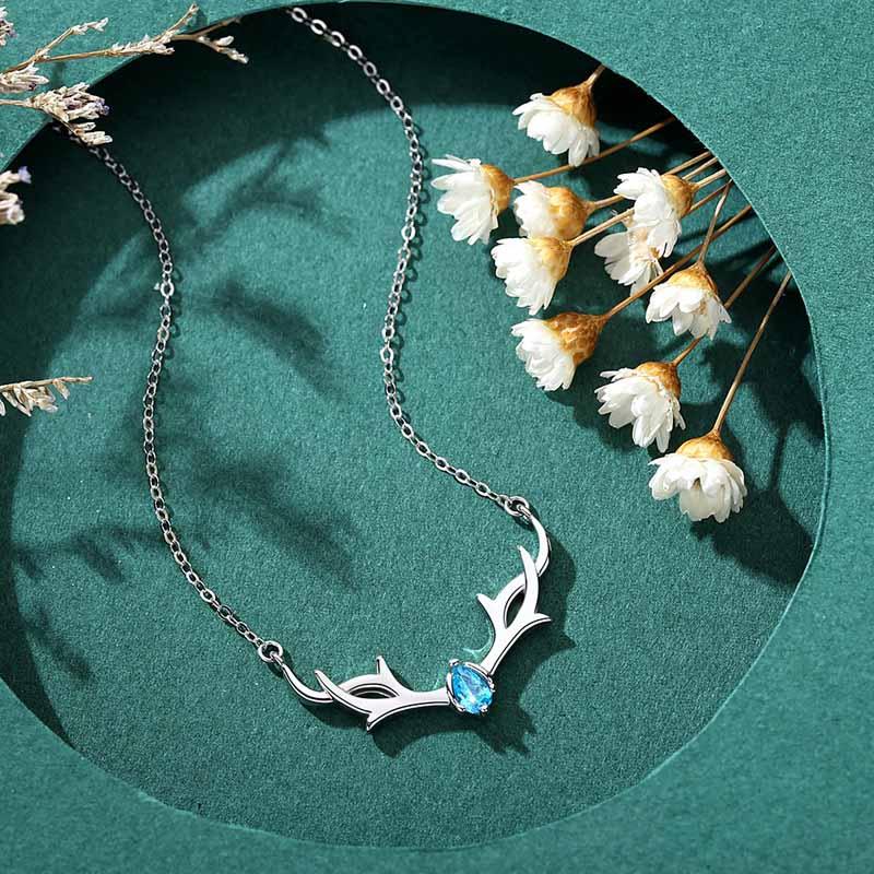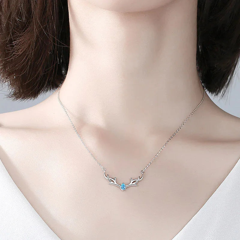 Embrace the holiday magic with this Christmas Reindeer Antler Silver Necklace. Designed with elegant antlers and a dazzling gemstone centerpiece, this necklace blends winter charm with timeless elegance.