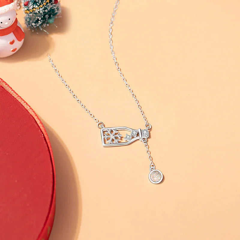 Celebrate the magic of Christmas with this elegant Snowflake Bottle Necklace — a timeless symbol of winter wonder and festive cheer.