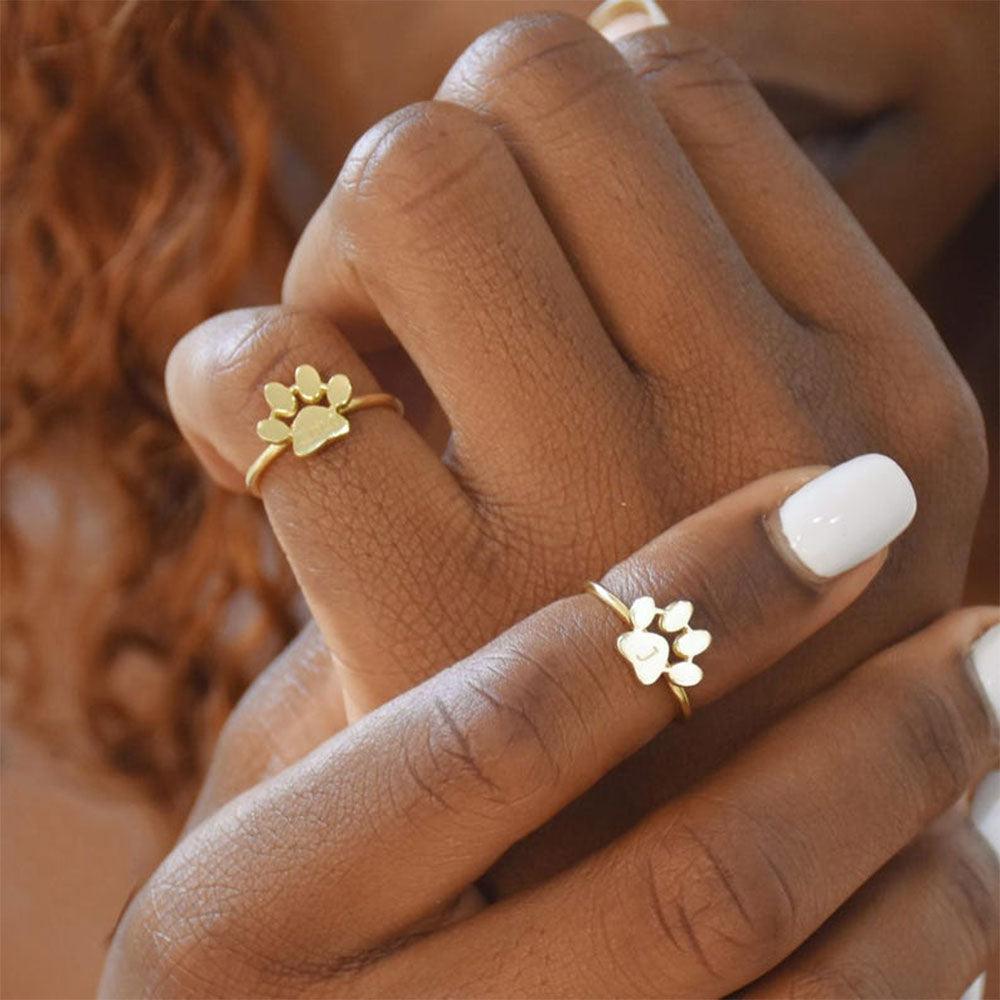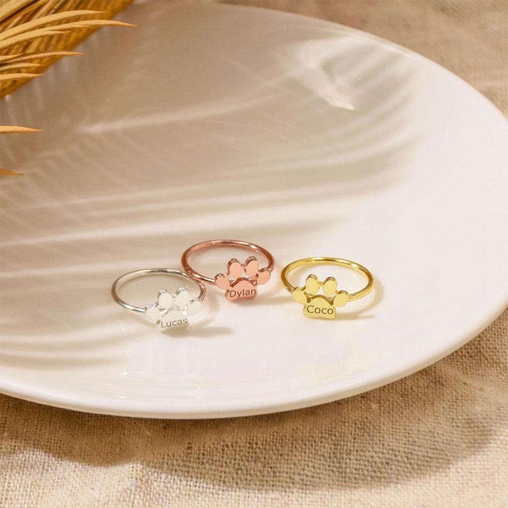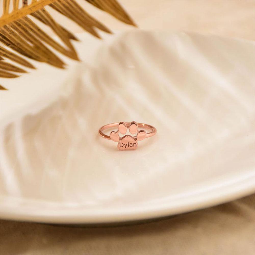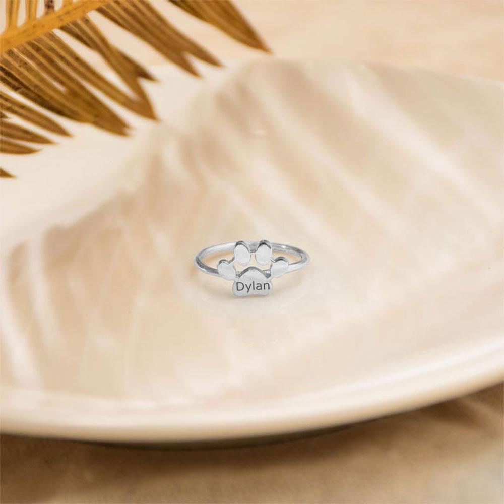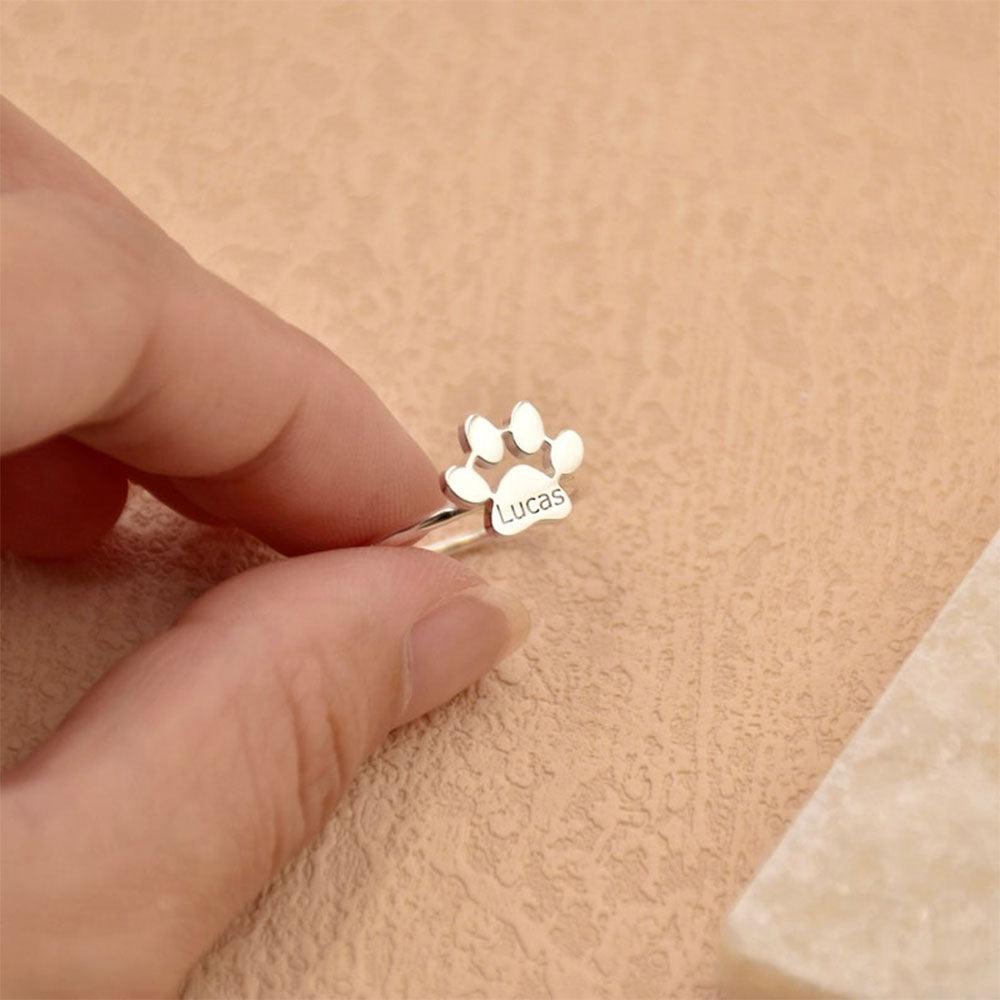 Custom Engraved Paw Print Ring | Personalised Pet Name Jewellery