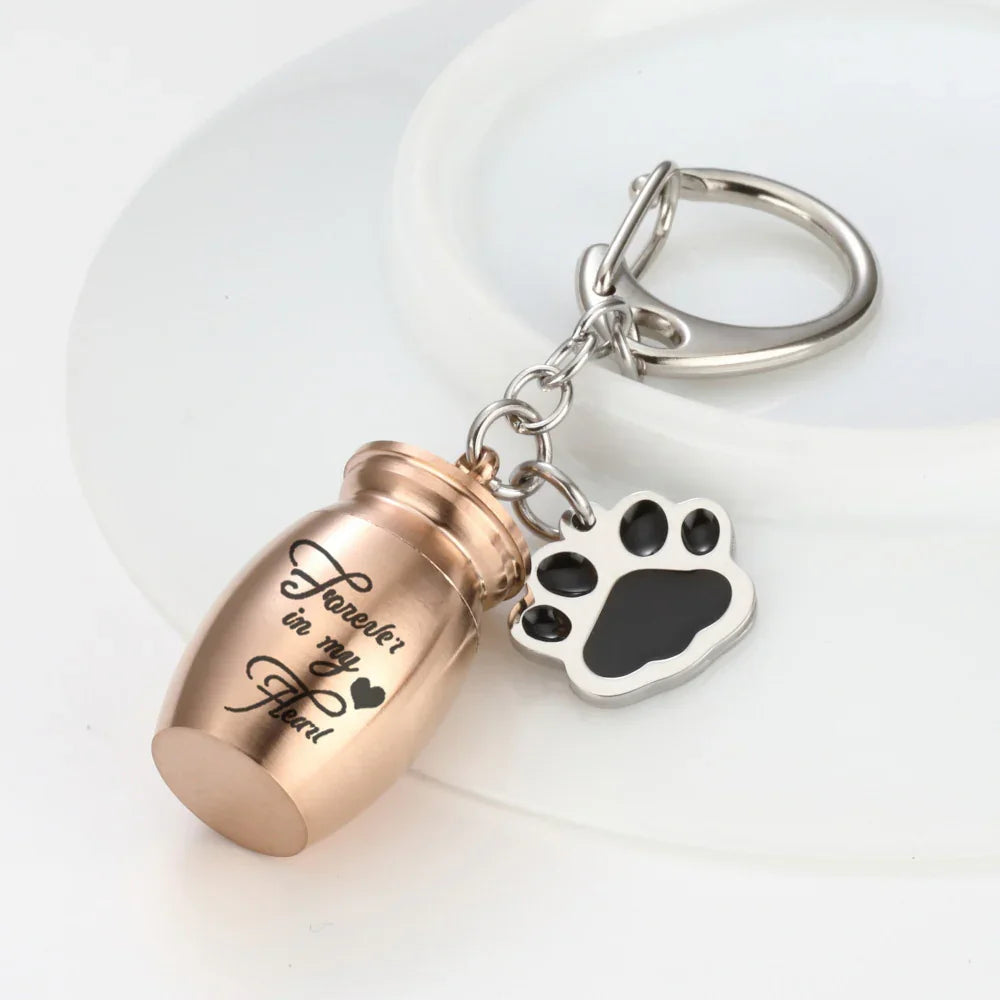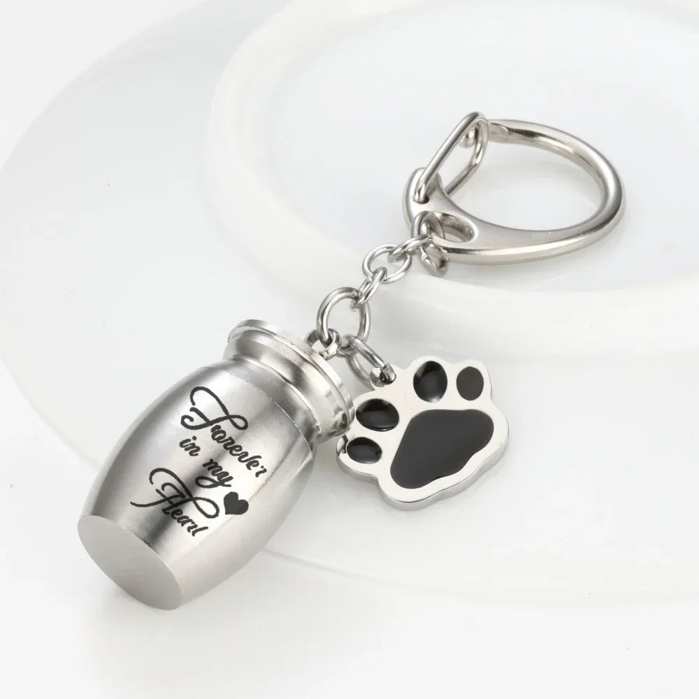 Keep the memory of your beloved pet close wherever you go with our Forever in My Heart Urn Keychain. This heartfelt keepsake features a discreet urn pendant designed to hold a small portion of ashes, fur, or other treasured mementos, while the paw charm symbolizes eternal love and companionship.