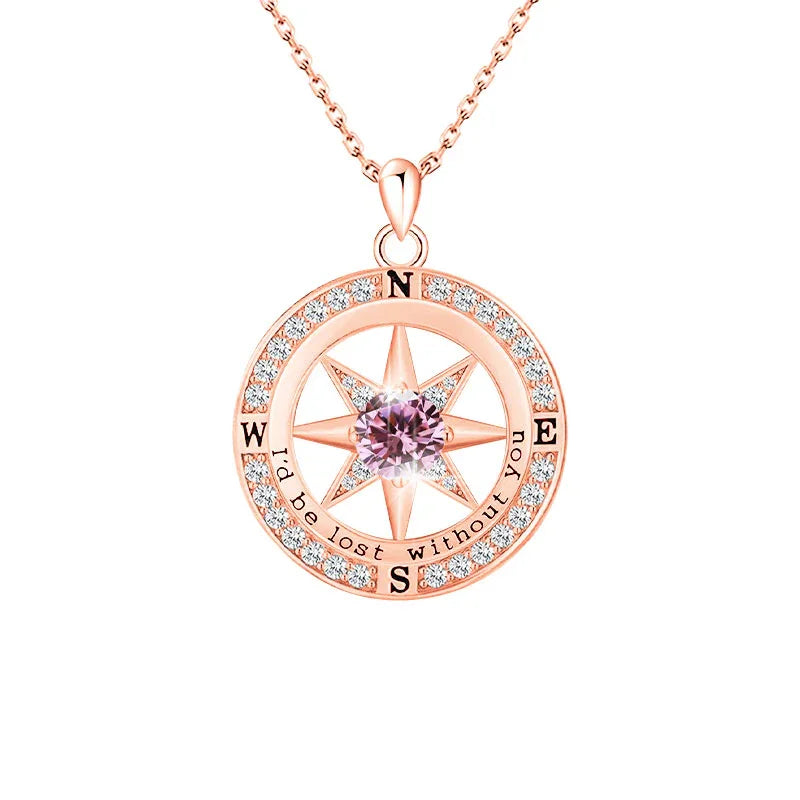 Elegant and heartfelt, the Guiding Star Birthstone Necklace symbolizes love that lights the way. The compass-shaped pendant, engraved with “I’d be lost without you,” represents finding direction through someone special. A radiant round birthstone at the center shines like the guiding star of your heart.