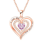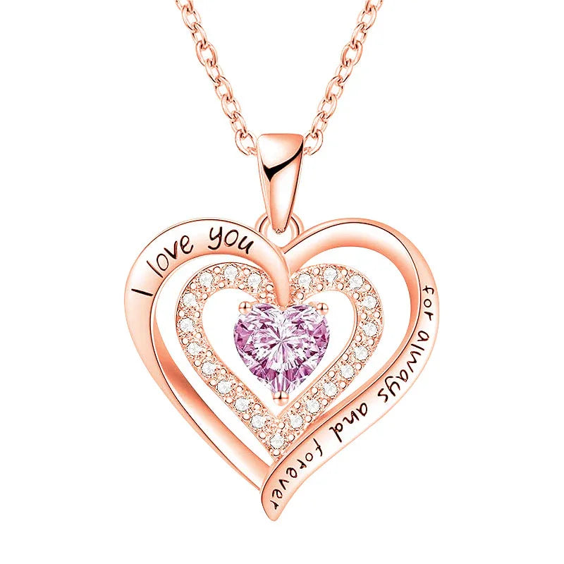 Elegant and timeless, the Forever Bond Birthstone Necklace celebrates love that never fades. The intertwined double-heart pendant, engraved with “I love you for always and forever,” holds a radiant heart-shaped birthstone—capturing the beauty of eternal connection.
