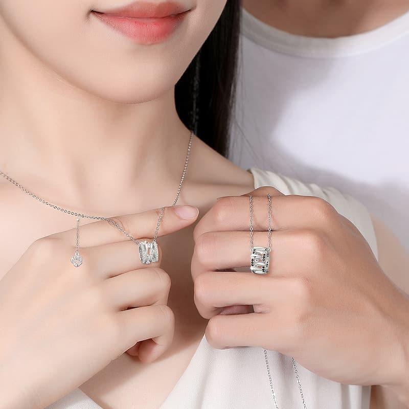 Celebrate timeless love with our LOVE Sterling Silver Couple Necklace Set. Designed with elegant cylinder pendants, the women’s necklace features a sparkling rose charm, while the men’s necklace showcases bold black stone accents. Crafted from premium sterling silver.