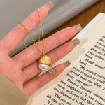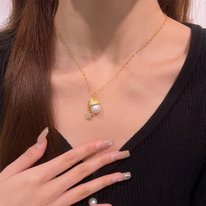 Celebrate the holiday season with our Radiant Glow Christmas Hat Pearl Necklace. This elegant piece features a charming Santa hat design paired with a lustrous pearl and a delicate star charm. Its playful yet sophisticated style adds a magical touch to your festive wardrobe, making it perfect for both casual and dressy occasions.