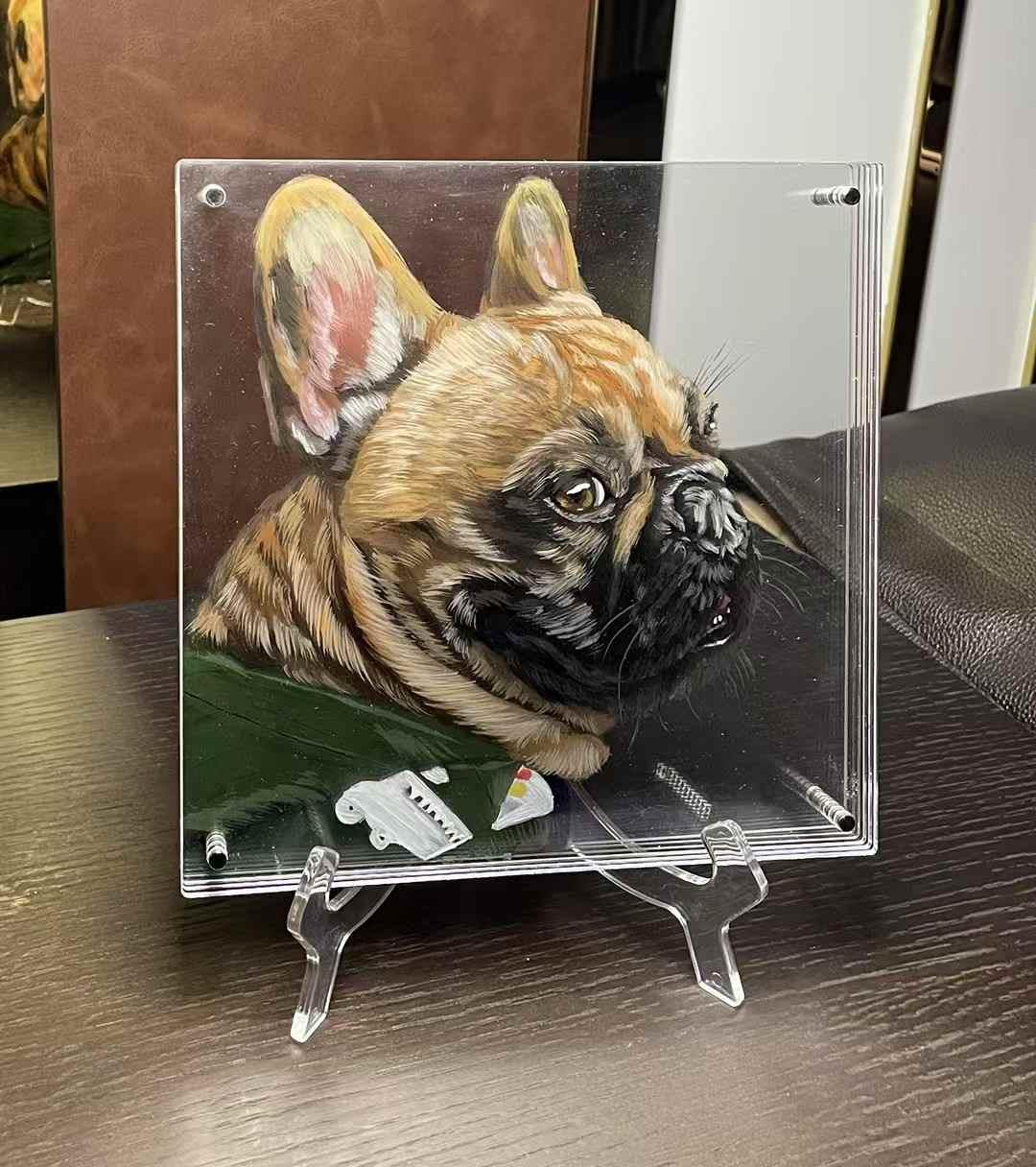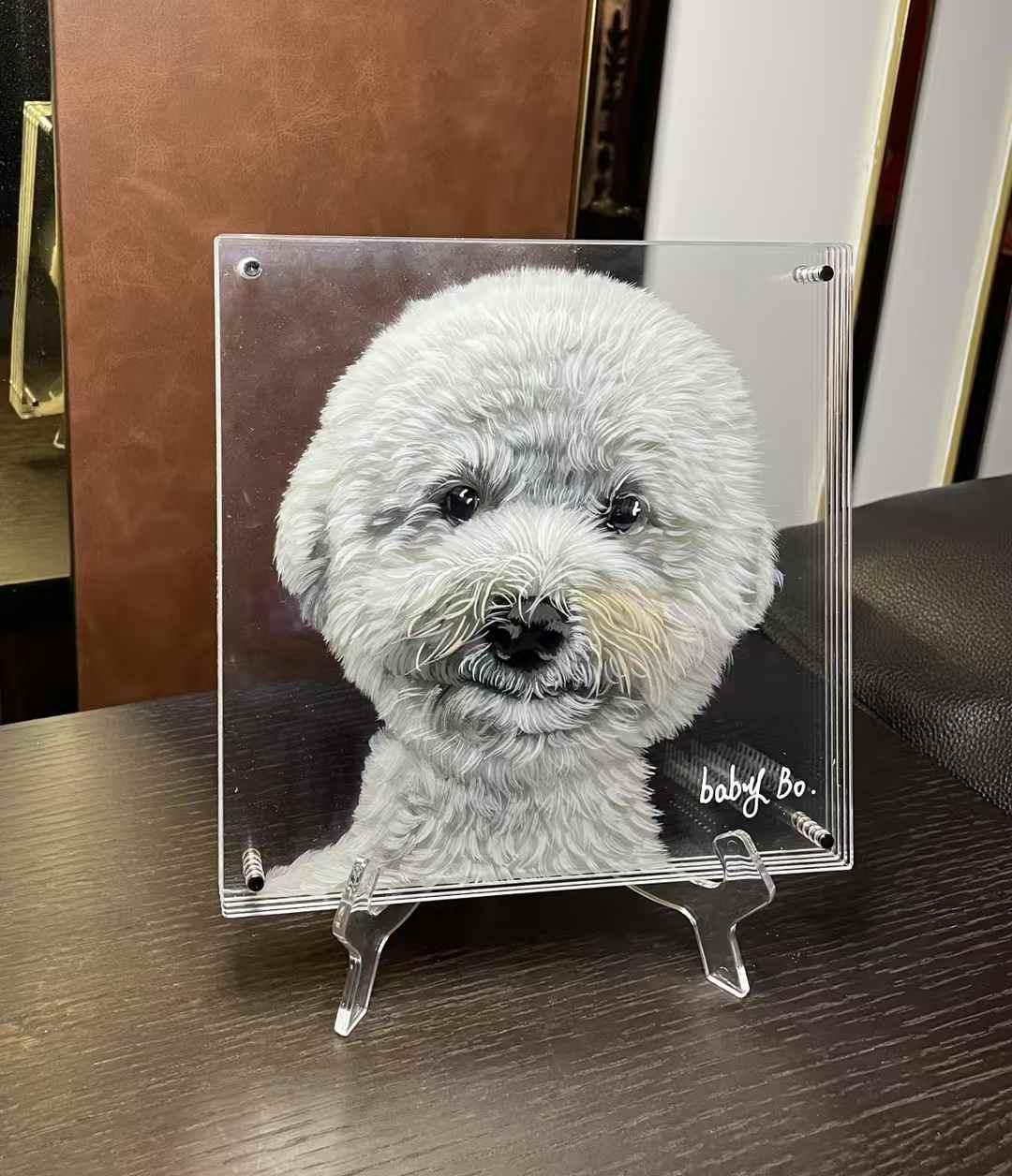 Turn your beloved pet into a timeless masterpiece with our custom hand-painted 3D layered oil portrait. Crafted by skilled artists using traditional techniques, each painting features rich textures and multi-layered brushstrokes that bring your pet's character to life on canvas.
