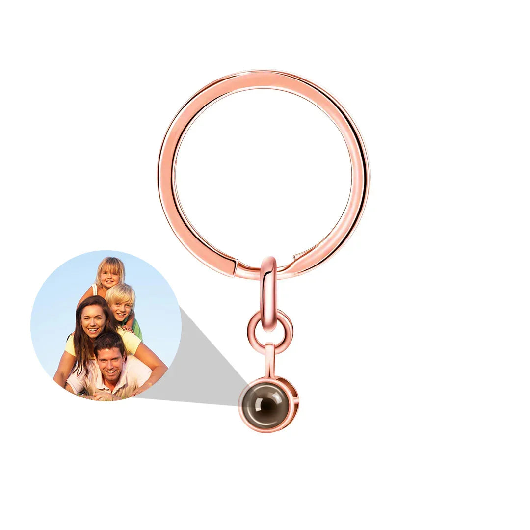 This minimalist keychain is a heartfelt and meaningful gift that carries love and connection within a custom photo projection charm.