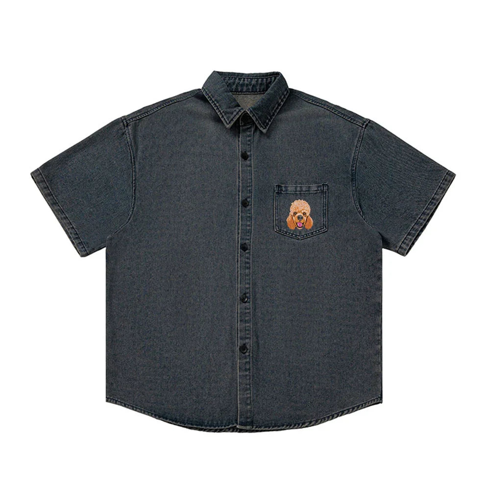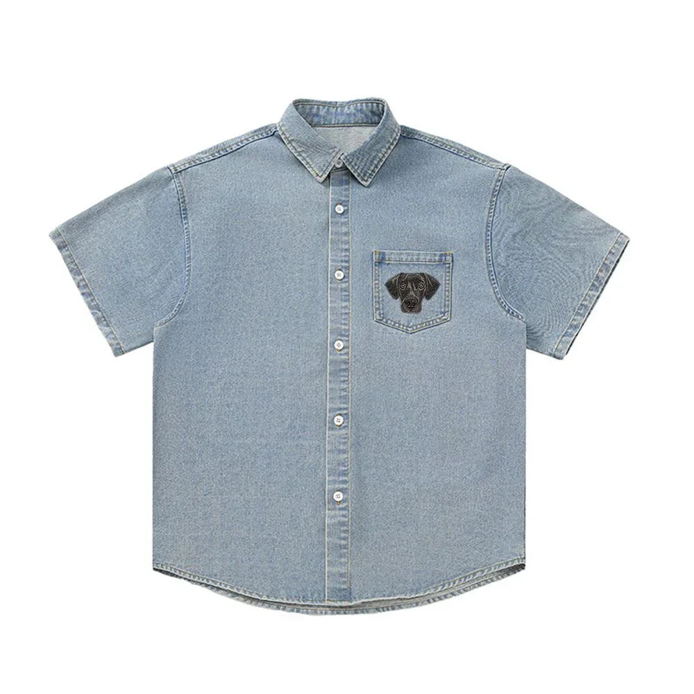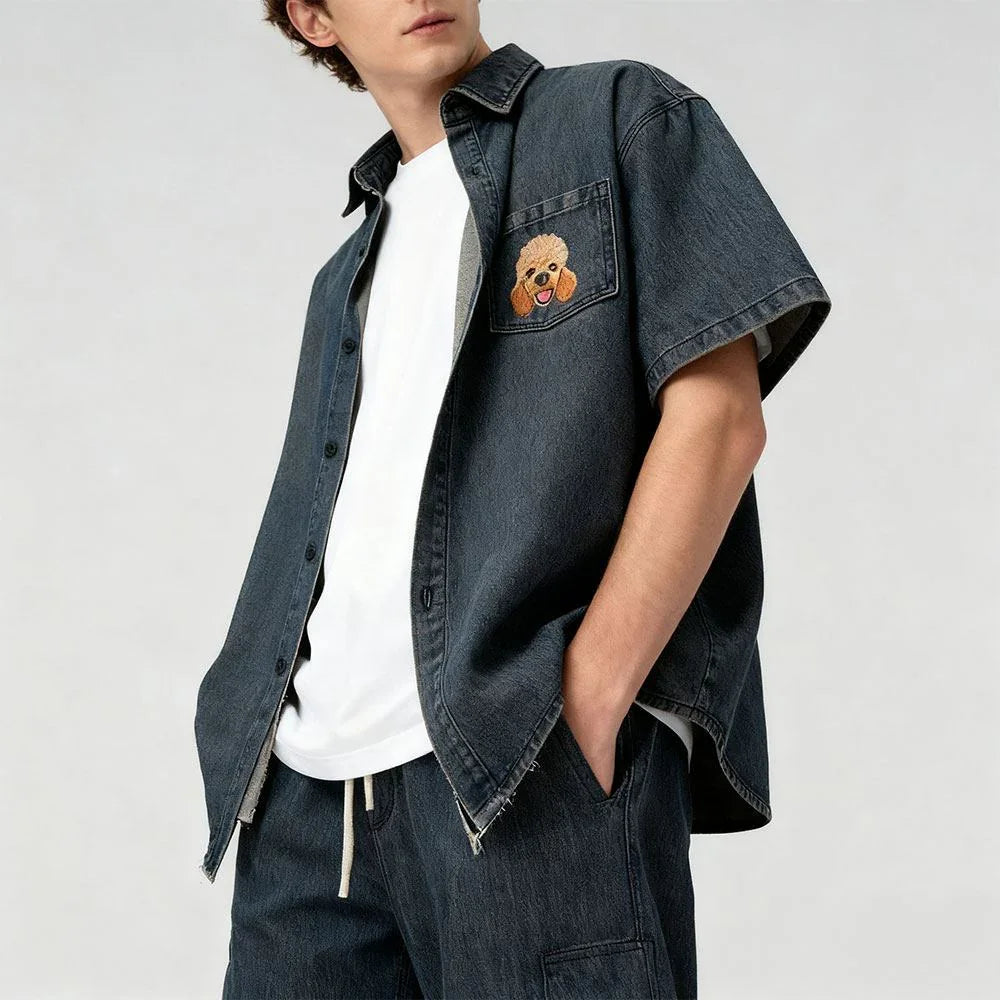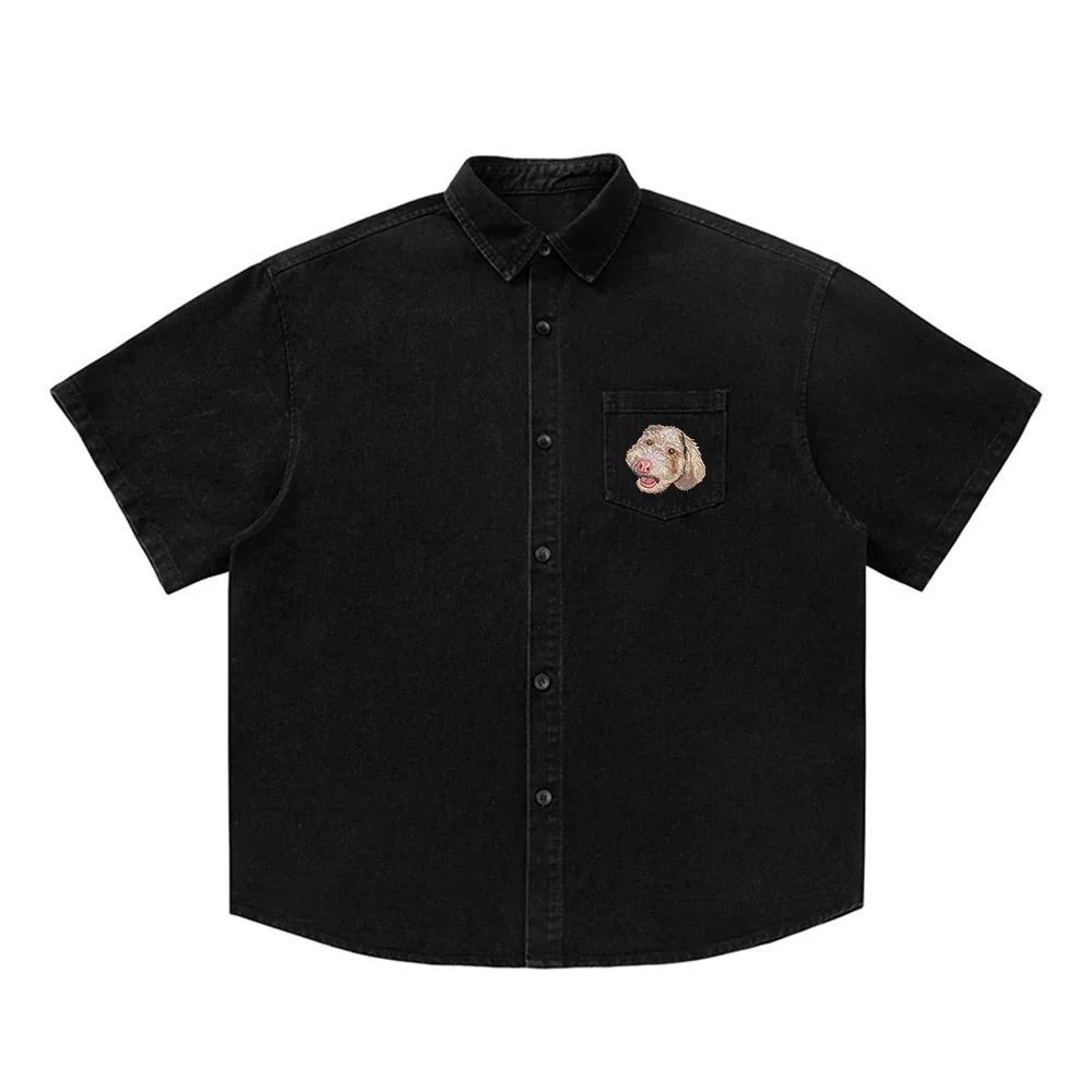 Custom Pet Embroidered Short Sleeved Denim Shirt