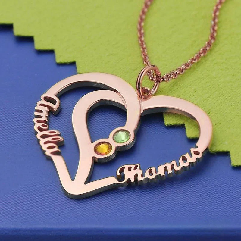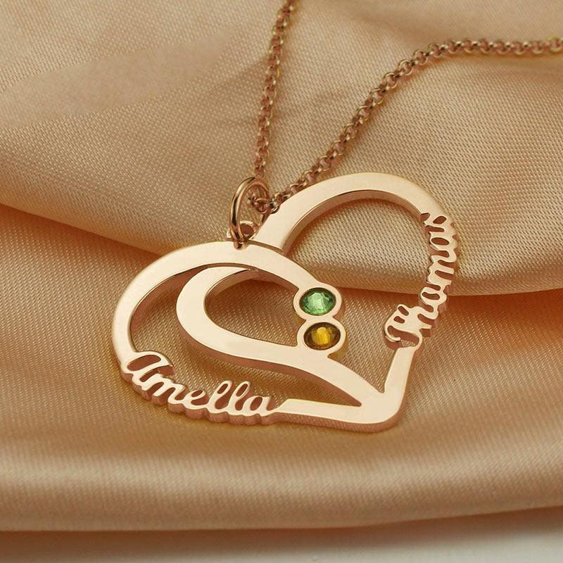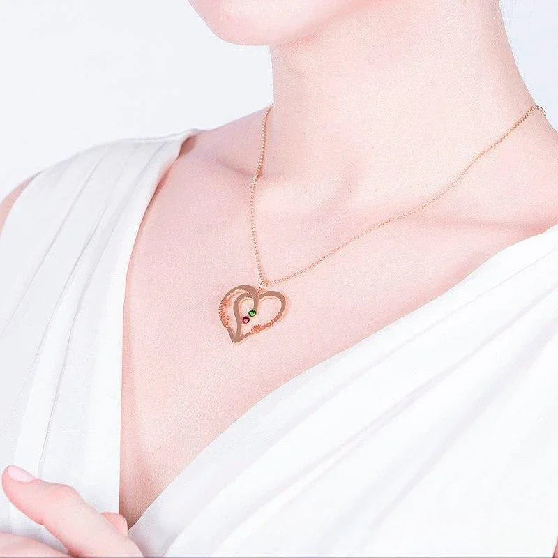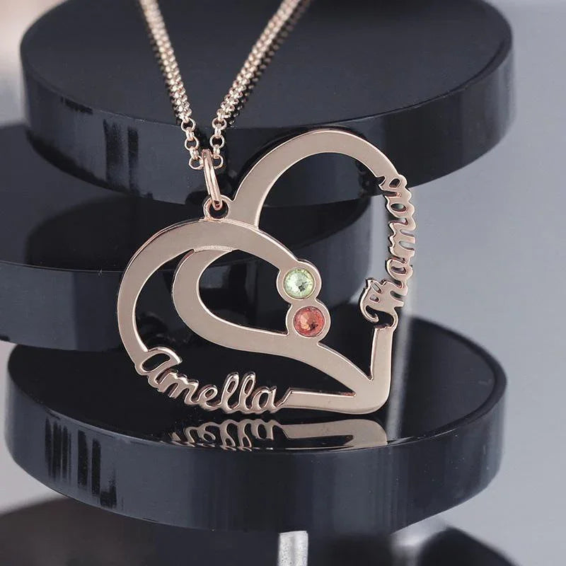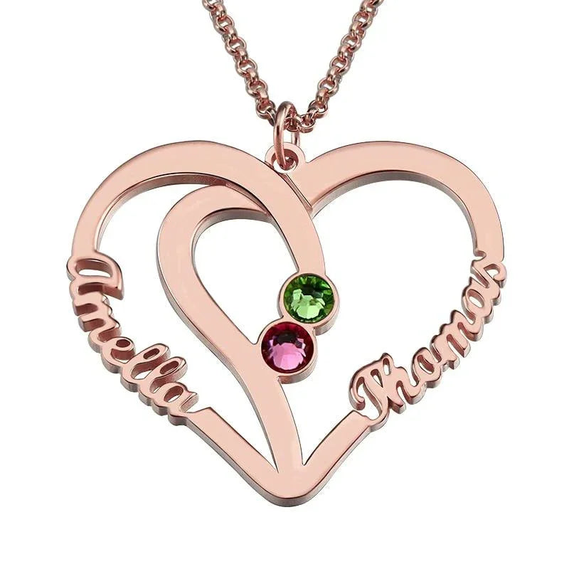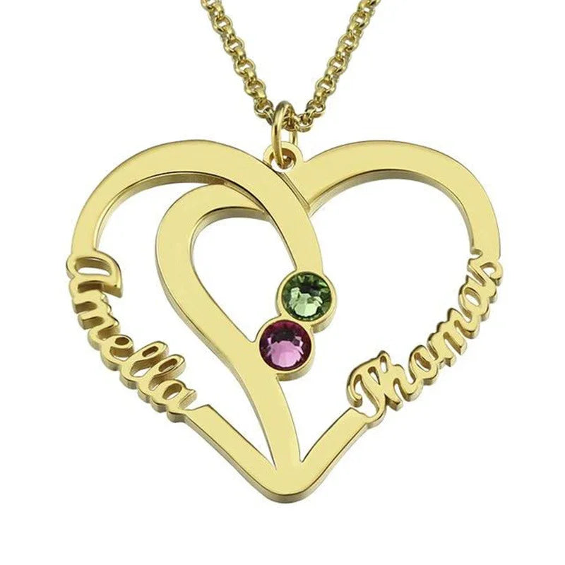 Show your love and connection with our Names and Birthstones Personalized Heart Necklace. This elegant piece features two beautifully engraved names within a heart outline, accented by shining birthstones that add a touch of color and meaning.