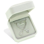 A silver personalized name necklace featuring a heart-shaped design intertwined with a stethoscope and the name “Lauren” in elegant script. The stethoscope’s chest piece includes a small engraved heartbeat line, symbolizing care and compassion.