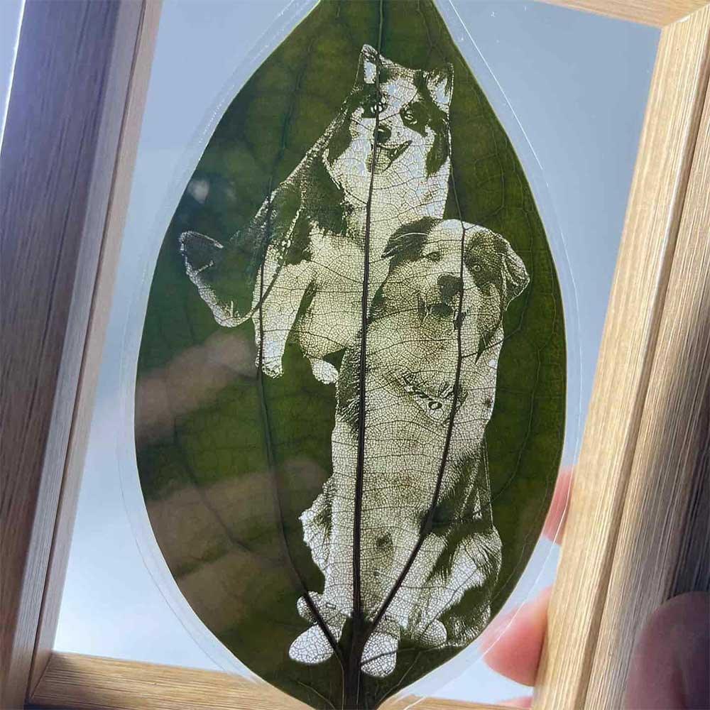 Each portrait is hand-carved onto a real leaf, preserving its delicate veins and natural beauty while capturing the unique features of your beloved pet.