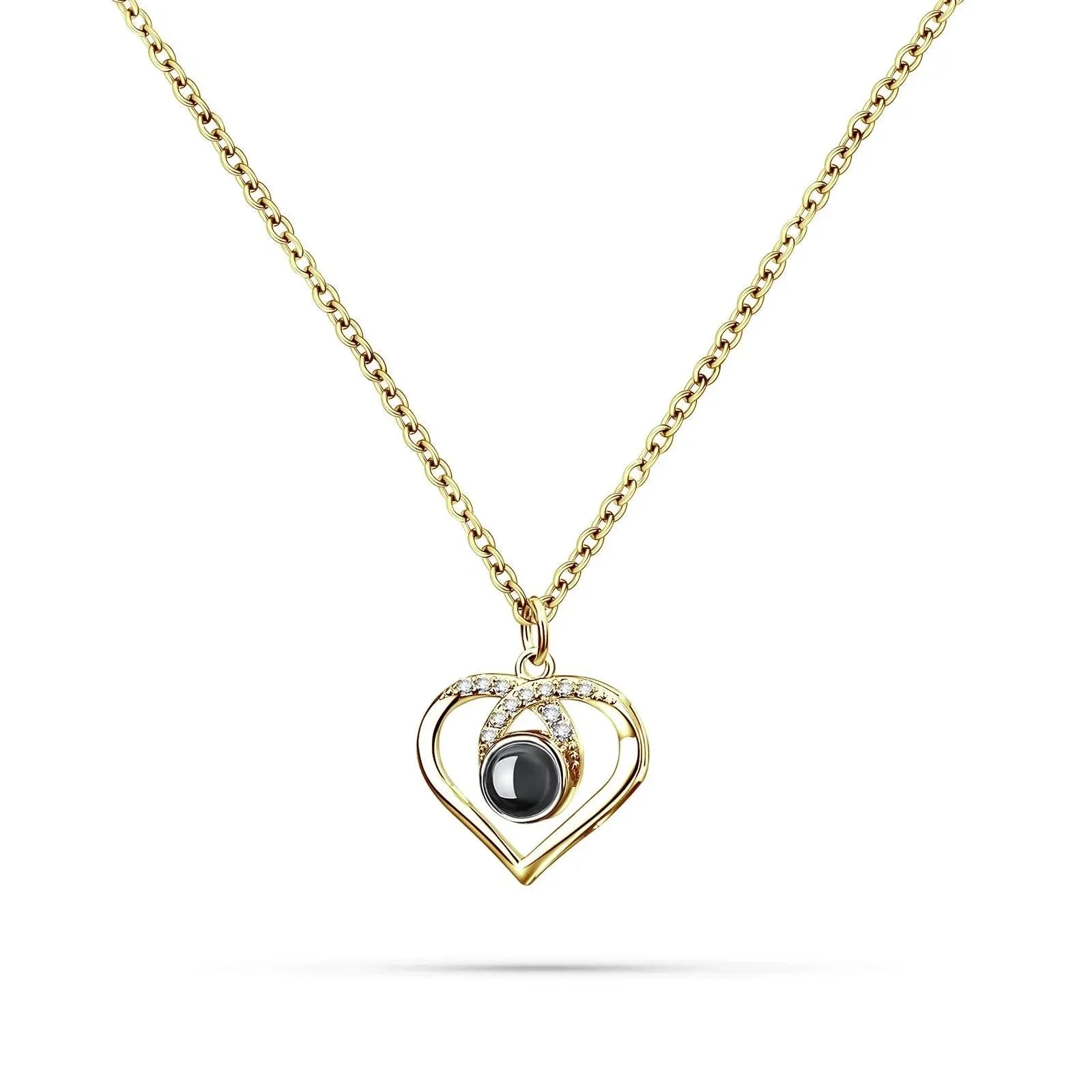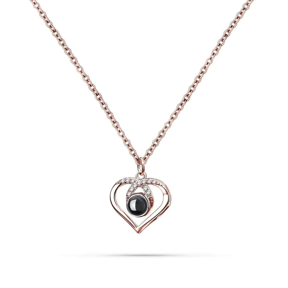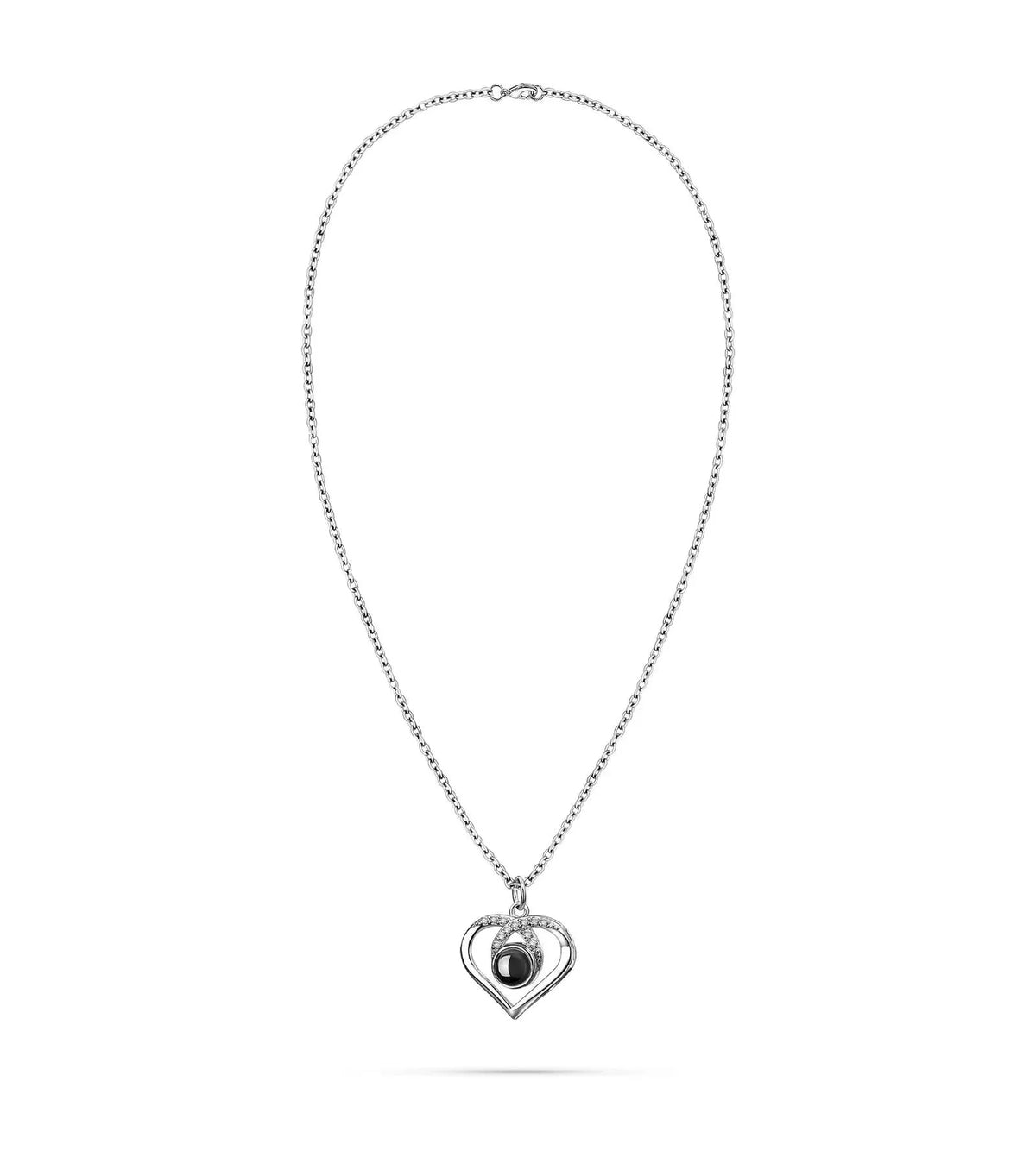 Crafted to honor someone dear, this elegant heart-shaped necklace features a hidden photo projection charm, keeping your loved one close to your heart—literally.