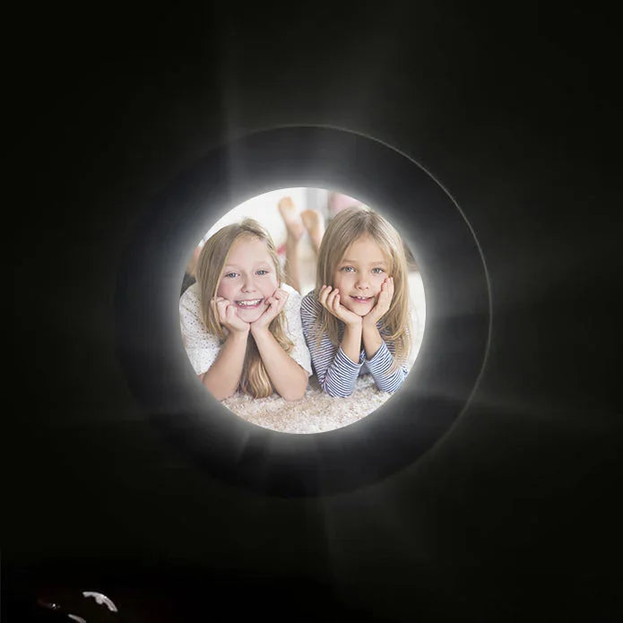 At the center lies a projection stone that reveals your chosen photo when viewed through your eyes, a phone camera, or under light. A magical moment in every glance.