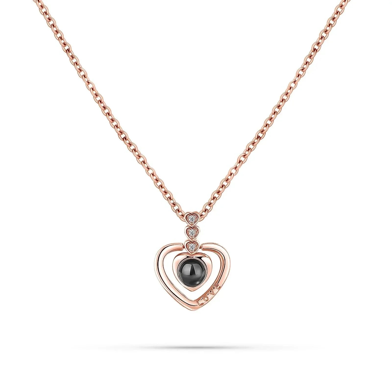 This elegant necklace features a layered heart pendant adorned with three sparkling mini hearts—symbolizing love, loyalty, and lasting memories with someone special.