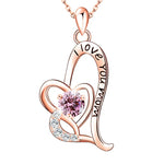 Elegant and radiant, the Cherished Heart Birthstone Necklace captures the beauty of everlasting love. The intertwined double-heart design cradles a sparkling birthstone at its center, symbolizing affection that grows stronger with time. Engraved with “I love you,” this necklace serves as a timeless keepsake of love and devotion.