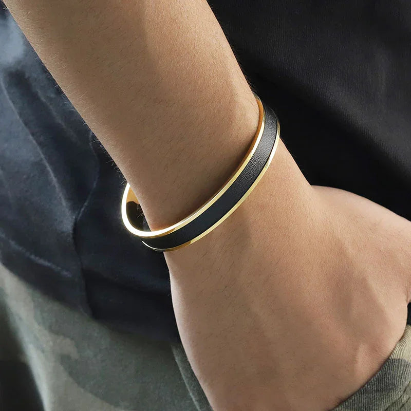 Elevate your everyday look with our Modern Minimalist Men’s Cuff Bracelet. Designed with a sleek black band framed by polished metallic edges, this bracelet embodies clean lines and contemporary elegance.