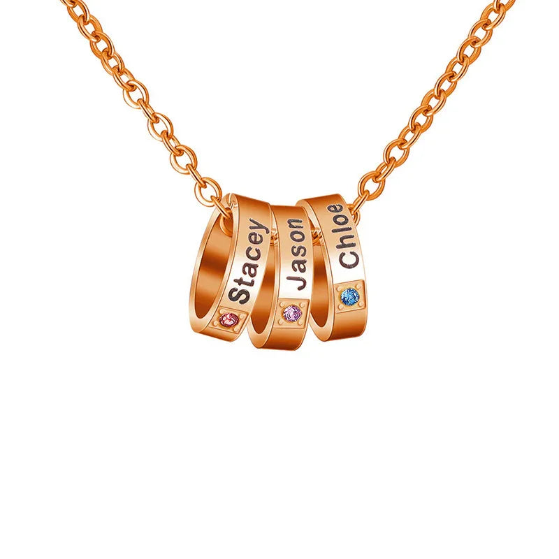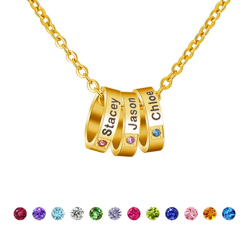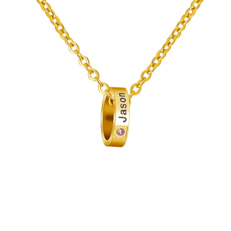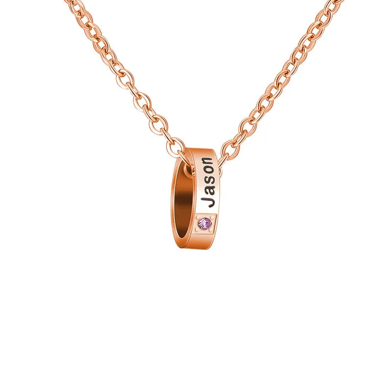 Celebrate love and unity with our Personalized Name Circle Pendant Necklace with Birthstones. Each elegant ring can be custom engraved with names and paired with a sparkling birthstone, creating a timeless keepsake that represents family, friendship, or individuality. A stylish and meaningful accessory for any occasion.