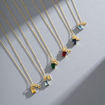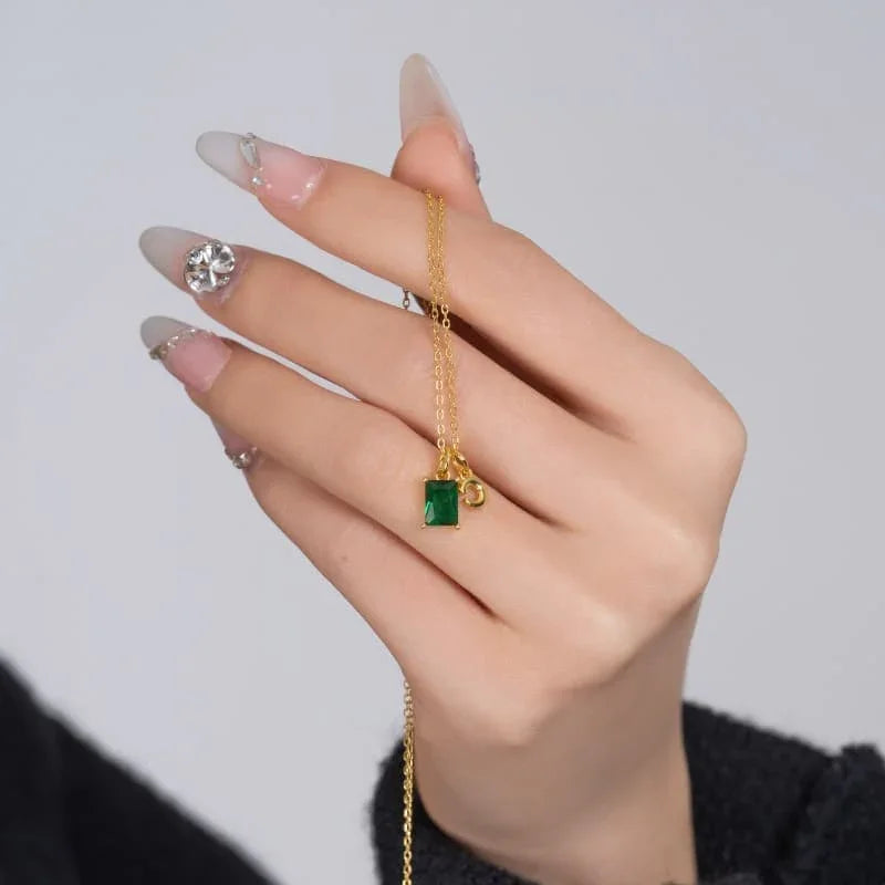 Personal, timeless, and radiant — the Radiant Initial Birthstone Necklace is a celebration of individuality and connection. Each piece features a sleek rectangular birthstone paired with a delicate letter charm, symbolizing someone special or a moment that shines in your story. Its refined silhouette makes it perfect for layering or wearing solo.